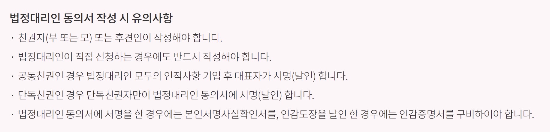 법정대리인 인감증명서* (또는 본인서명확인서, 전자본인서명서)