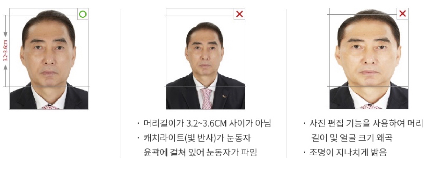 온라인 신청용 사진은 가로 413픽셀, 세로 531픽셀의 크기를 권장합니다.
