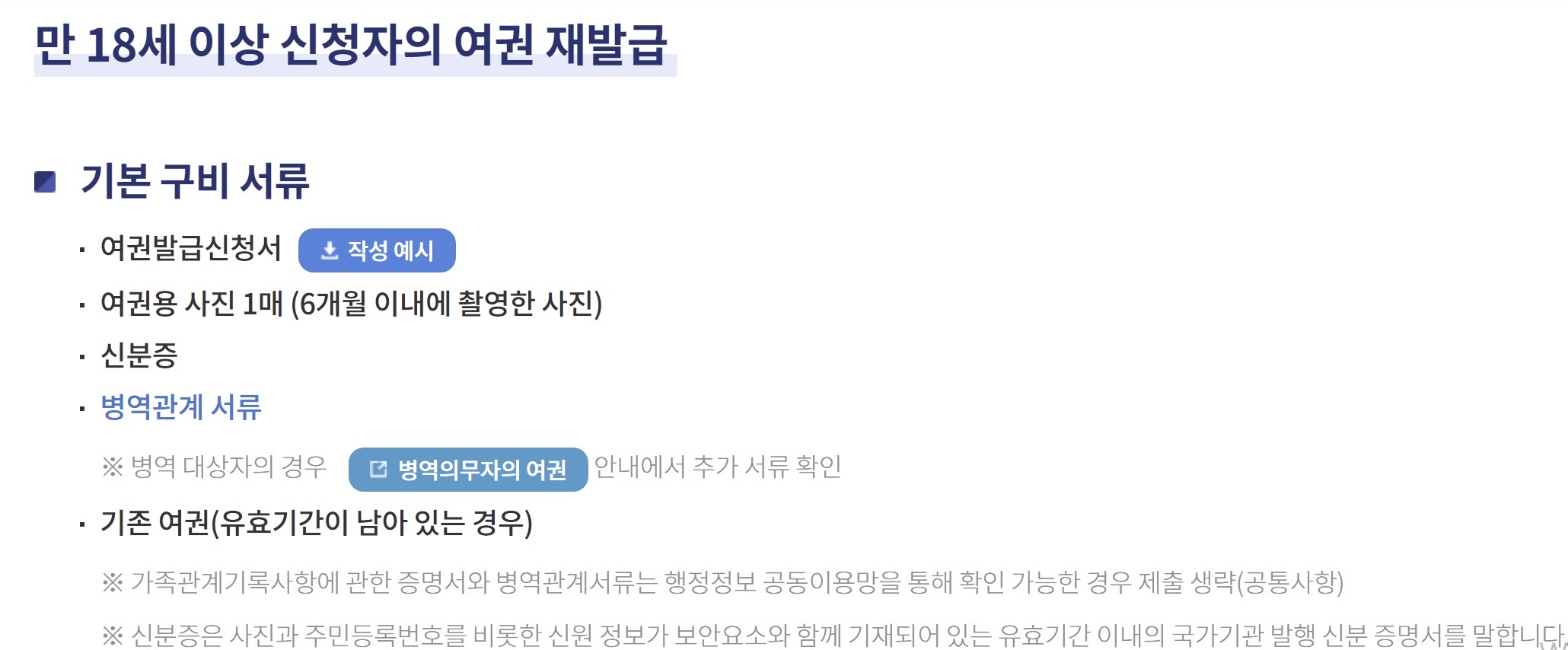 신분증 병역관계 서류 기존 여권(유효기간이 남아 있는 경우)