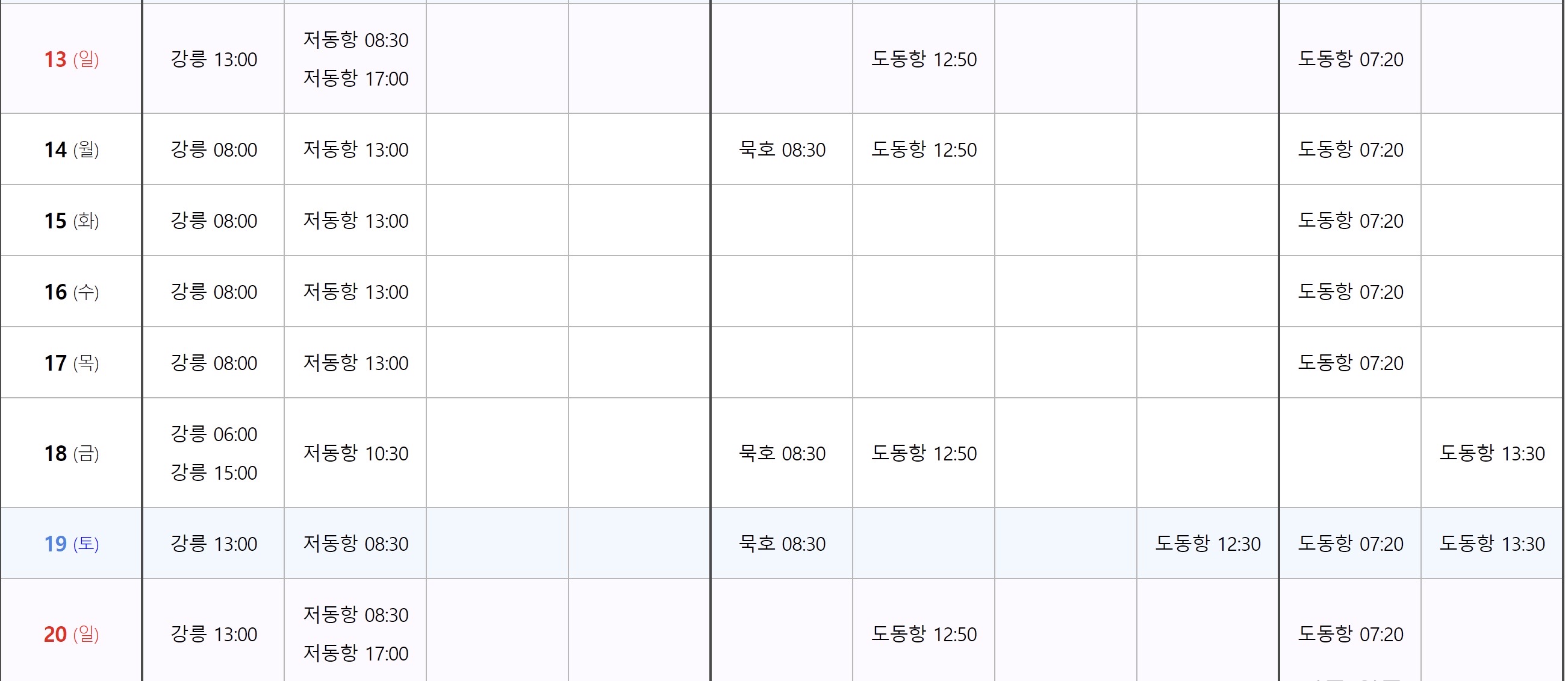 도동항의 배편은 하루에 여러 번 운행되며, 오전부터 오후까지 다양한 시간대에 출발합니다.