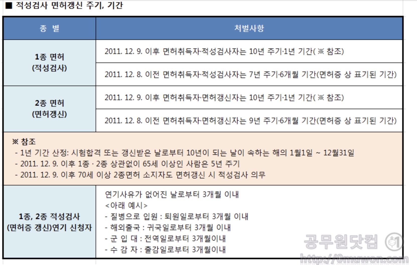 하지만 합격 당시 연령이 65세 이상 75세 미만인 경우는 5년, 75세 이상이거나 한쪽 눈만 볼 수 있는 경우는 3년으로 주기가 조정됩니다.