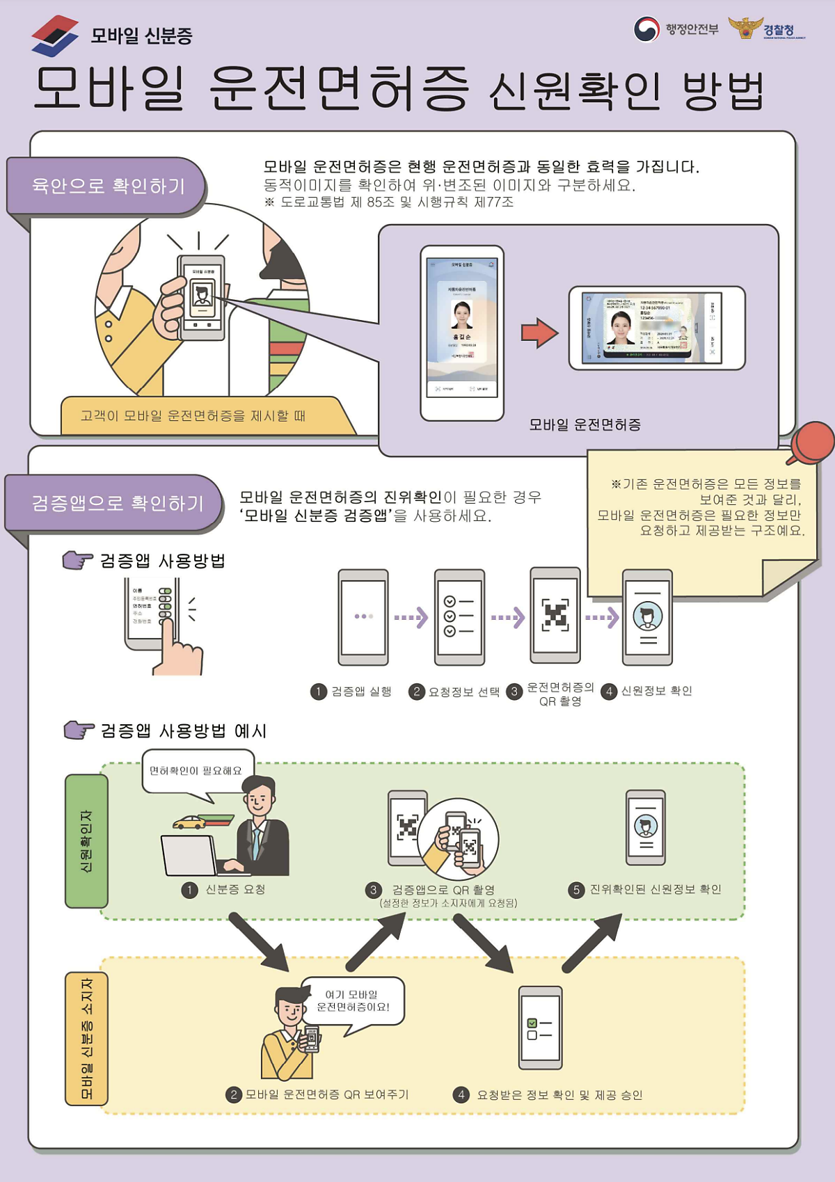 모바일 운전면허증은 기존의 운전면허증과 동일한 효력을 지니며, 교통 단속 시에도 문제없이 사용할 수 있습니다.